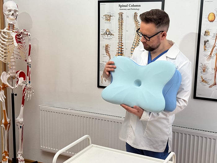 Het kussen onderscheidt zich door zijn duidelijk gedefinieerde contouren, die hoofd en cervicale wervelkolom stabieler begeleiden dan gewone memory foam kussens. Hierdoor blijft de nekhouding tijdens het slapen evenwichtiger, wat spanning aanzienlijk kan verminderen.